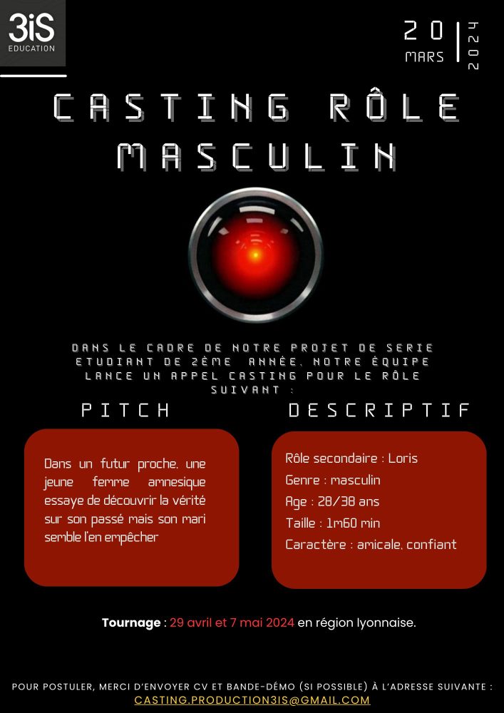 Dans le cadre de notre projet de série, notre équipe lance un appel à casting pour le rôle suivant :